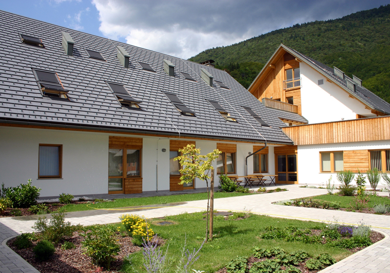 Dom za starejše v Bohinju, zasnovan v treh enotah z lokalnimi arhitekturnimi elementi, notranjost in zunanjost oblikovani z mislijo na funkcionalnost in tradicijo.